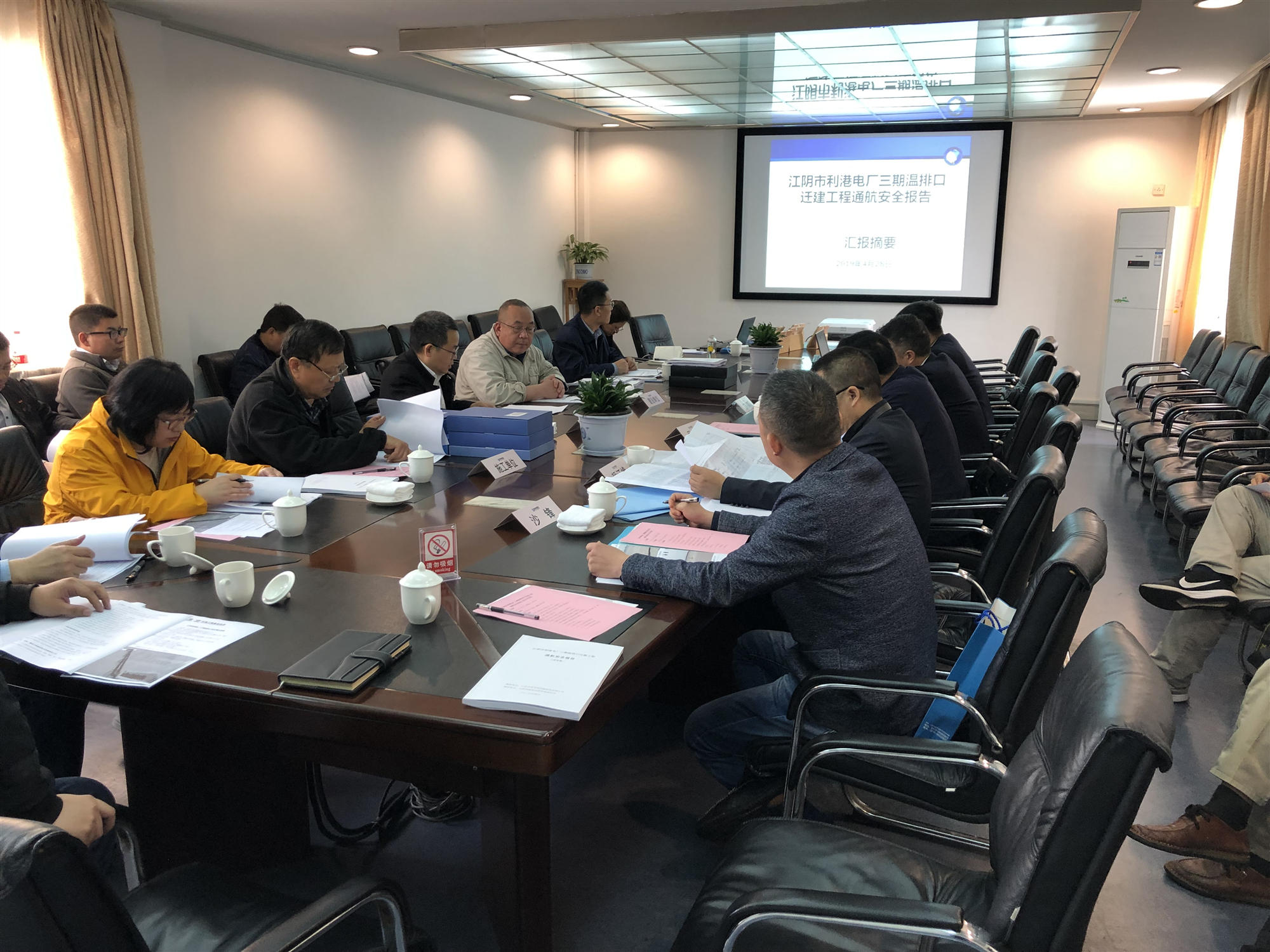 2019年4月28日,江陰海事局在江陰組織召開了江陰市利港電廠三期溫排口遷建工程通航核查會議。參加會議的有江陰海事局、江陰利港發(fā)電股份有限公司(業(yè)主單位)、中設設計集團股份有限公司(設計單位)、中海工程建設總局有限公司(施工單位)、上海??乒こ套稍冇邢薰荆ūO(jiān)理單位)、江蘇中信安全環(huán)境科技有限公司(報告編制單位)代表以及特邀專家。